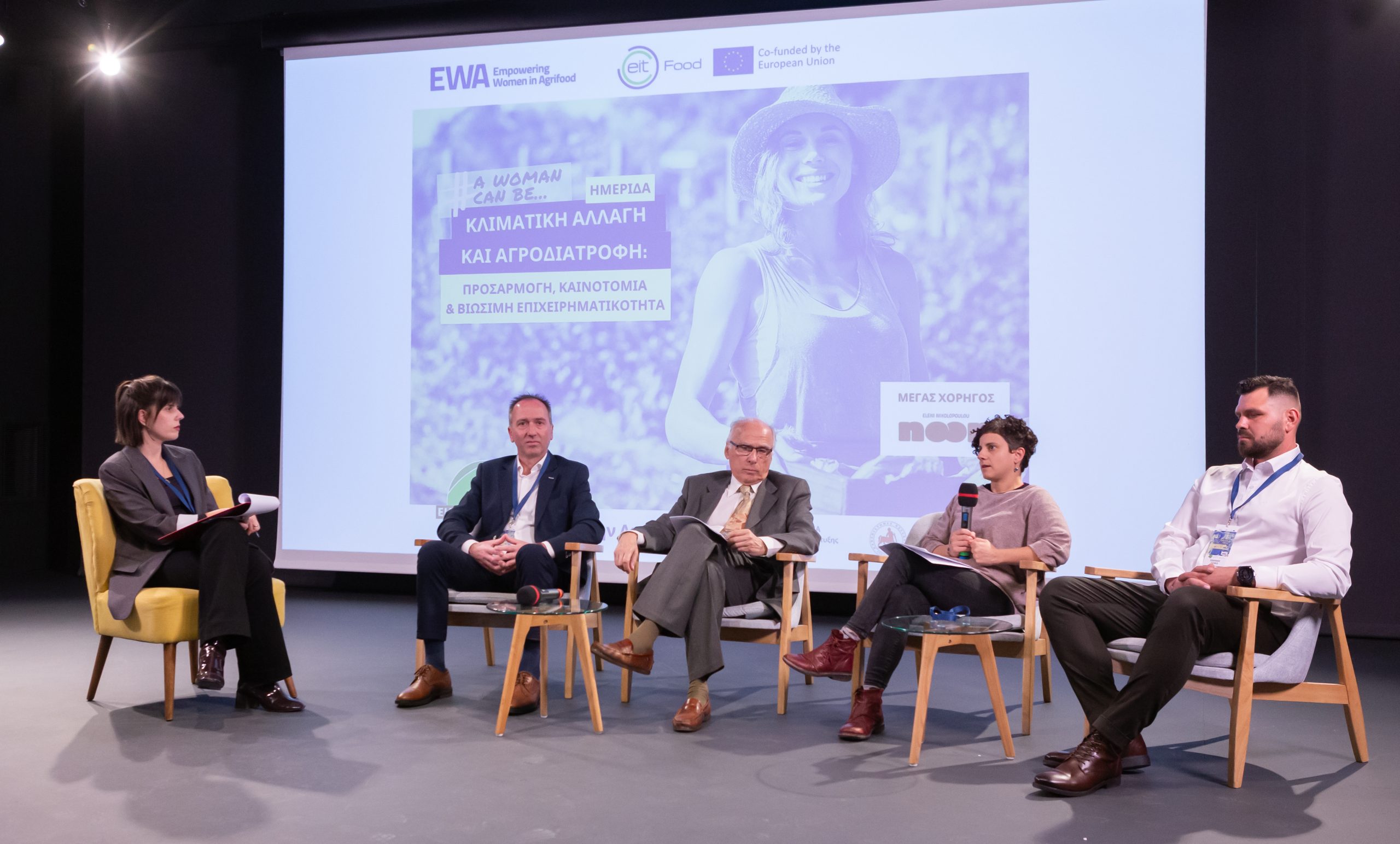 Μία γιορτή για τη γυναικεία ενδυνάμωση και την επιχειρηματικότητα η οποία ανέδειξε καινοτόμες ιδέες και πρωτοβουλίες στον αγροδιατροφικό τομέα πραγματοποιήθηκε την Πέμπτη 20 Νοεμβρίου στην Αθήνα, στο πλαίσιο του ευρωπαϊκού προγράμματος EIT Food – Empowering Women in Agrifood (EWA). Πιο συγκεκριμένα, το πρόγραμμα ολοκληρώθηκε με την πραγματοποίηση της ημερίδας «Κλιματική Αλλαγή και Αγροδιατροφή: Προσαρμογή, Καινοτομία και Βιώσιμη Επιχειρηματικότητα» στη διάρκεια της οποίας φιλοξενήθηκε το Pitching Event στο οποίο δέκα γυναίκες, που είχαν λάβει εκπαίδευση και καθοδήγηση, παρουσίασαν τις επιχειρηματικές τους ιδέες.