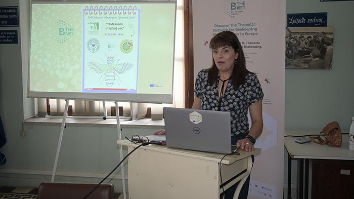 Ακολούθησαν οι ομιλίες της Φανής Χατζήνα, Βιολόγου, Ερευνήτρια Τμήμα Μελισσοκομίας ΕΛΓΟ ΔΗΜΗΤΡΑ για την Μέλισσα και την προσφορά της στο περιβάλλον και ειδικότερα για τις σωστές μελισσοκομικές πρακτικές μέσα από το πρόγραμμα ΒΤΗΕΝΕΤ, του Κώστα Ζαμπάκα, γεωπόνου, Εκπαιδευτή ΣΑΕΚ Λάρισας για τις ενέργειες που πρέπει να γίνουν για τον Πράσινο Πλανήτη και την εξασφάλιση τροφής για τις μέλισσες, ενώ προχώρησε σε επίδειξη σημαντικών μελισσοκομικών πρακτικών και της Κατερίνας Καρατάσου, Κτηνιάτρου, Επόπτριας Μελισσοκομικού Κέντρου ΟΜΣΕ για το πως προσεγγίζουν τα παιδιά και οι νέοι τη μέλισσα.