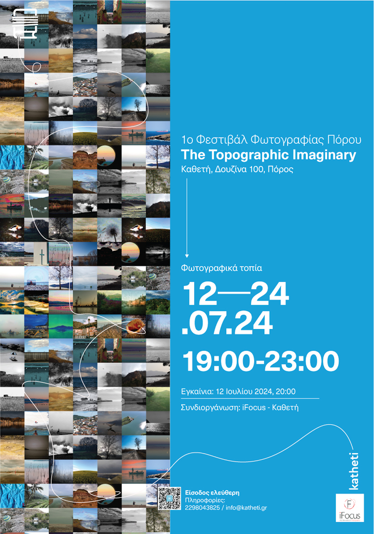 Φέτος το καλοκαίρι μια πανδαισία φωτογραφικών τοπίων θα πλημμυρίσει την Πούντα! Το iFocus.gr, σε συνεργασία με την Καθετή, διοργανώνει το 1ο Φεστιβάλ Φωτογραφίας Πόρου με τίτλο «The Topographic Imaginary». Η έκθεση θα φιλοξενηθεί στην Καθετή από τις 12 έως τις 24 Ιουλίου και θα είναι καθημερινά ανοιχτή για το κοινό μεταξύ 7:00 και 11:00 μμ. Τα εγκαίνια θα γίνουν την Παρασκευή 12 Ιουλίου στις 8:00 μμ.