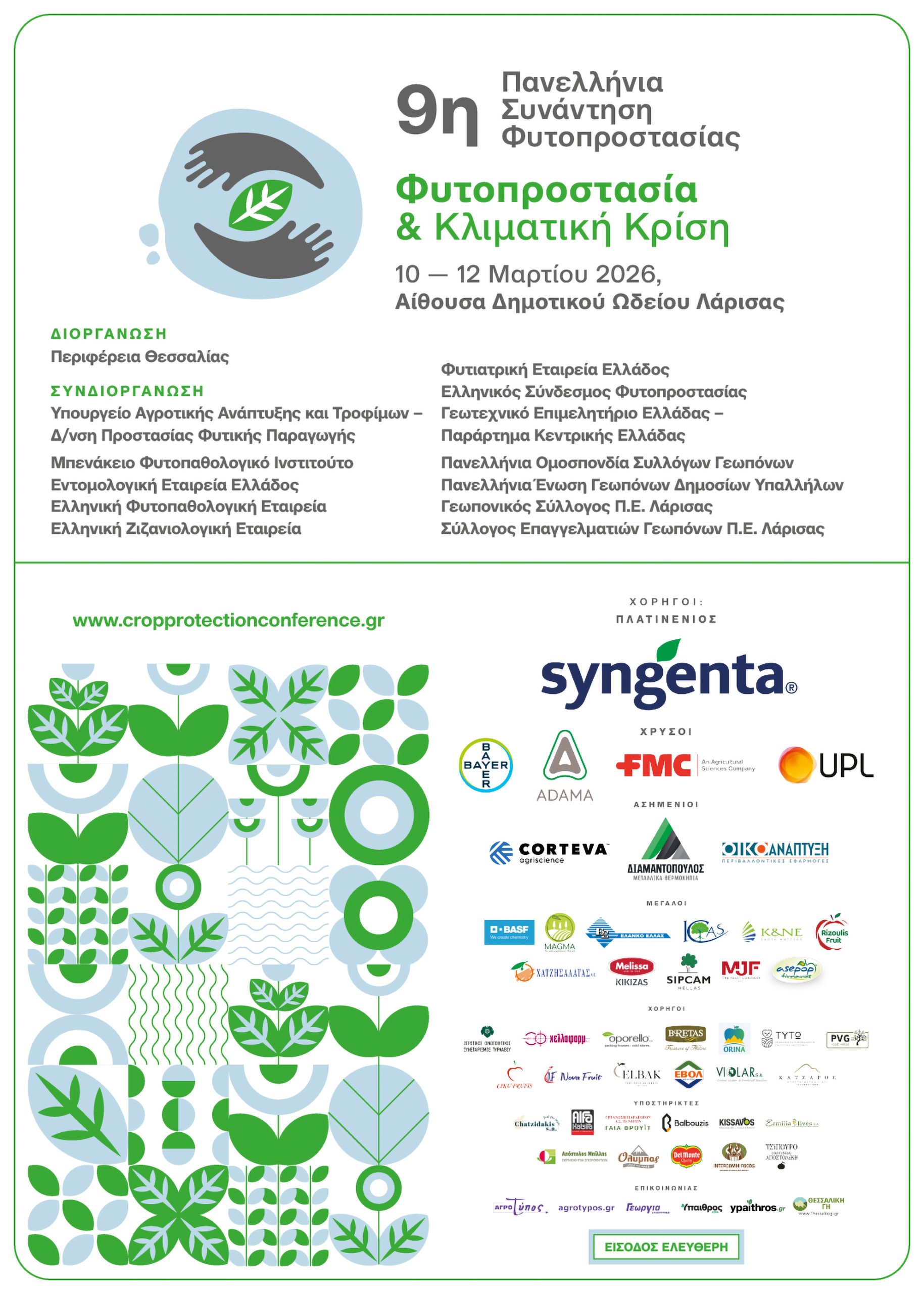 9η Πανελλήνια Συνάντηση Φυτοπροστασίας, στη Λάρισα 10/03 - 12/03