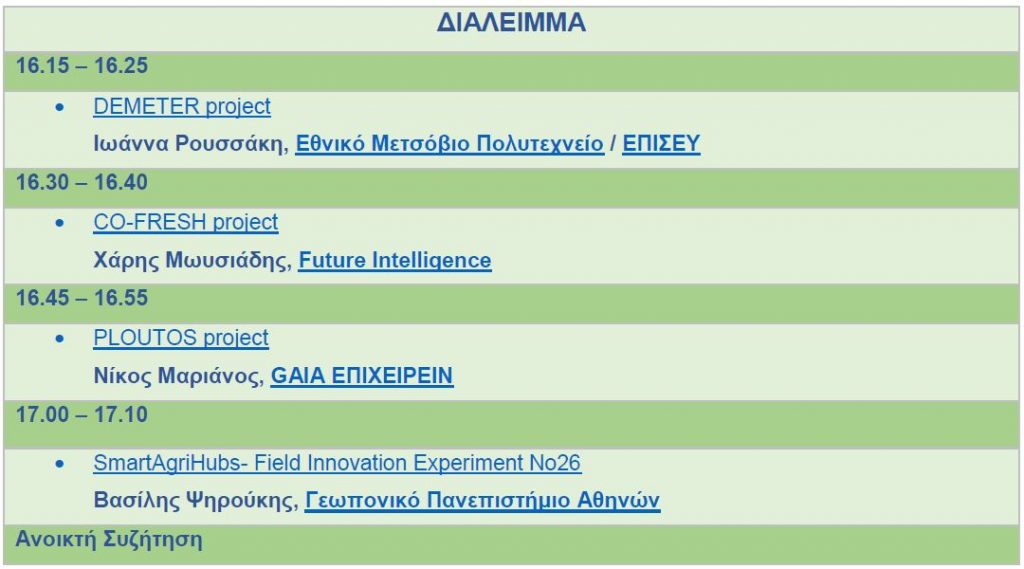 Στο πλαίσιο της εκδήλωσης θα συζητηθούν οι δραστηριότητες σε αυτά τα πιλοτικά έργα, τα αποτελέσματά τους, η γνώση που παρήχθη και τα προϊόντα που πλέον διατίθενται στην αγορά. Επίσης κατά τη διάρκεια της εκδήλωσης θα παρουσιαστούν σχετικές δράσεις και έργα υπόλοιπων σημαντικών παικτών του ελληνικού οικοσυστήματος έρευνας και καινοτομίας για την αγροδιατροφή στο τελευταίο μέρος της ευελπιστώντας να προκαλέσει μια ζωντανή συζήτηση για την γενικότερη πρόοδό του.