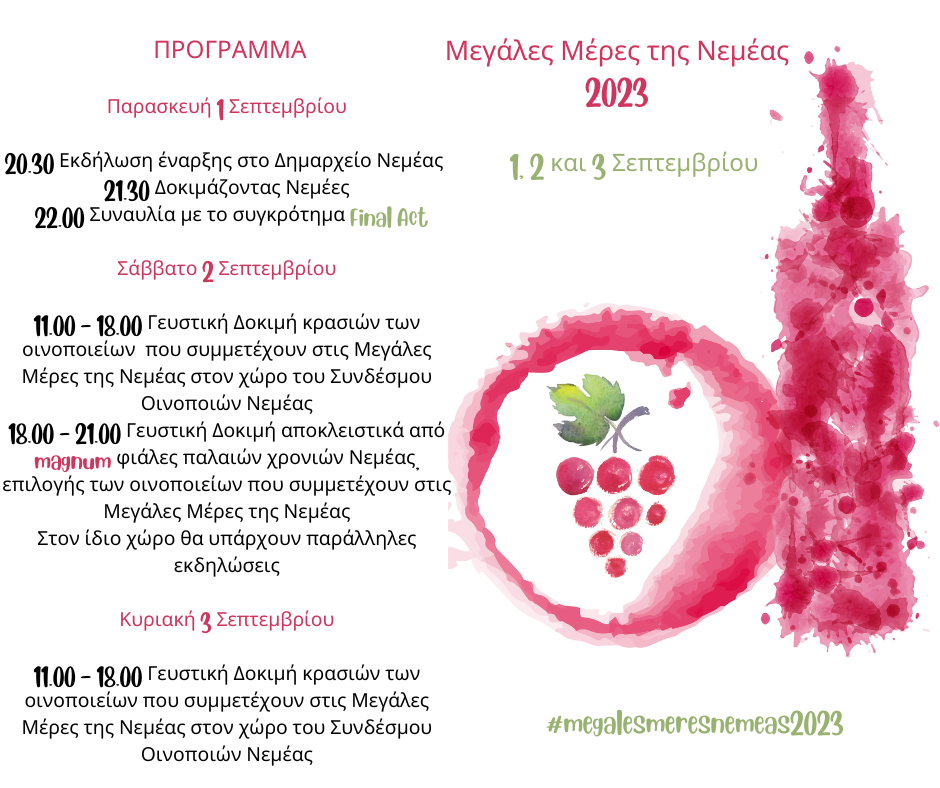 Καλούμε όλους τους λάτρεις του κρασιού και της Νεμέας να συμμετάσχουν στις Μεγάλες Μέρες της Νεμέας 2023.