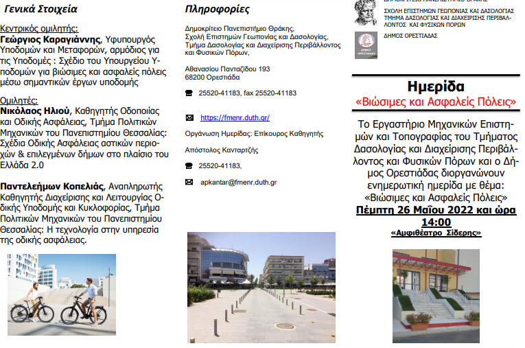 Hμερίδα με θέμα «Βιώσιμες και Ασφαλείς Πόλεις» την Πέμπτη 26 Μαΐου στην Ορεστιάδα 01/01