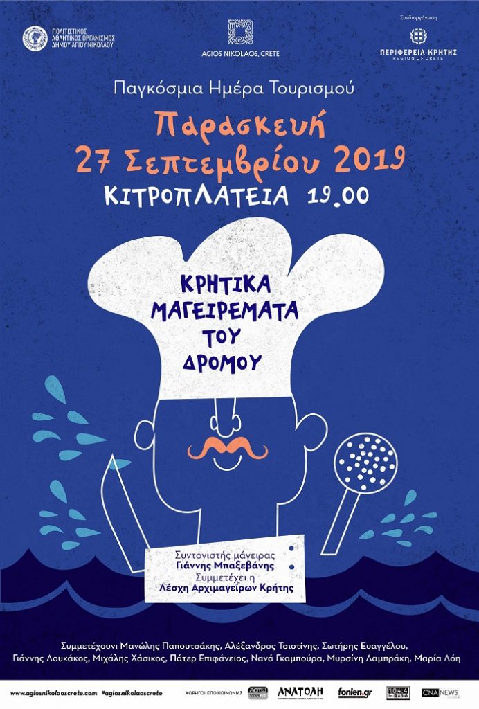Με το συντονισμό του μάγειρα Γιάννη Βαξεβάνη, την ενεργή παρουσία και στήριξη της Λέσχης Αρχιμαγείρων Κρήτης και την φιλοξενία διακεκριμένων μαγείρων της σύγχρονης ελληνικής κουζίνας, ο Πολιτιστικός Αθλητικός Οργανισμός του Δήμου Αγίου Νικολάου (ΠΑΟΔΑΝ) διοργανώνει για τρίτη συνεχόμενη χρονιά με την στήριξη της Περιφέρειας Κρήτης μια ξεχωριστή εμπειρία γευσιγνωστικών απολαύσεων για κάθε επισκέπτη και κάτοικο του Αγίου Νικολάου και της Κρήτης, προκειμένου να τιμήσει τη γιορτή τουρισμού με «μαγειρέματα του δρόμου».