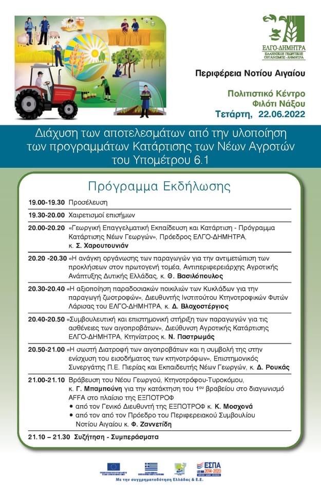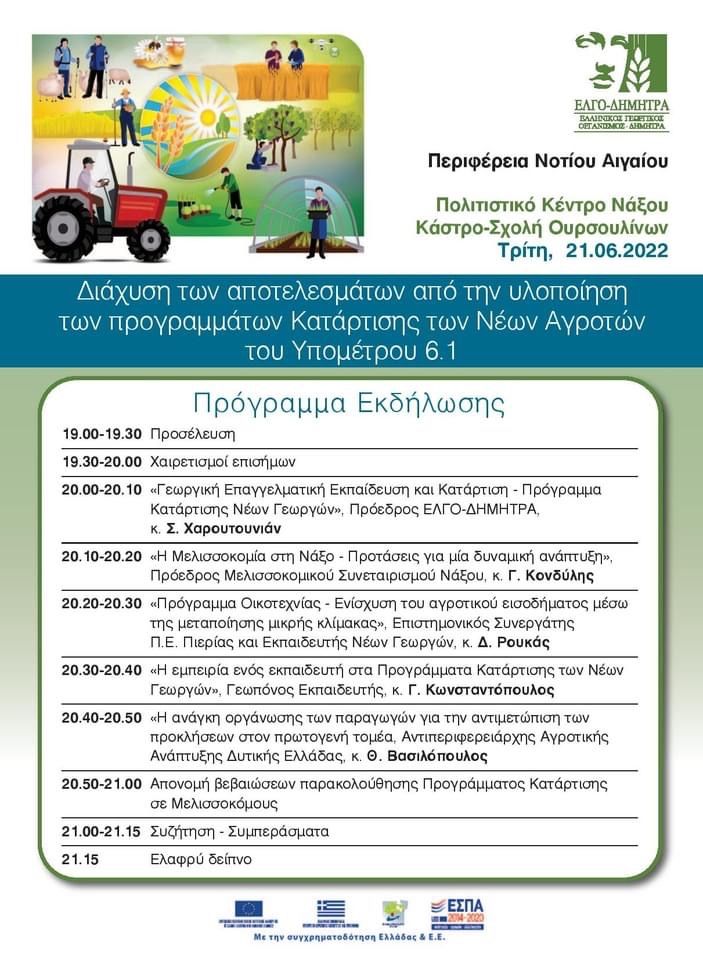 Νάξος: Eκδηλώσεις του ΕΛΓΟ-ΔΗΜΗΤΡΑ για αγρότες στις 21 και 22 Ιουνίου 01/01
