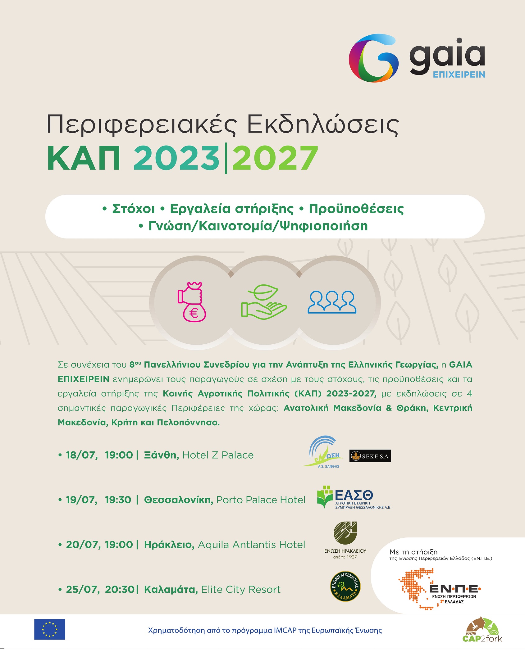 Νέες εκδηλώσεις σε Ξάνθη, Θεσσαλονίκη, Ηράκλειο και Καλαμάτα για την ΚΑΠ 2023-2027, από τη GAIA ΕΠΙΧΕΙΡΕΙΝ 01/01