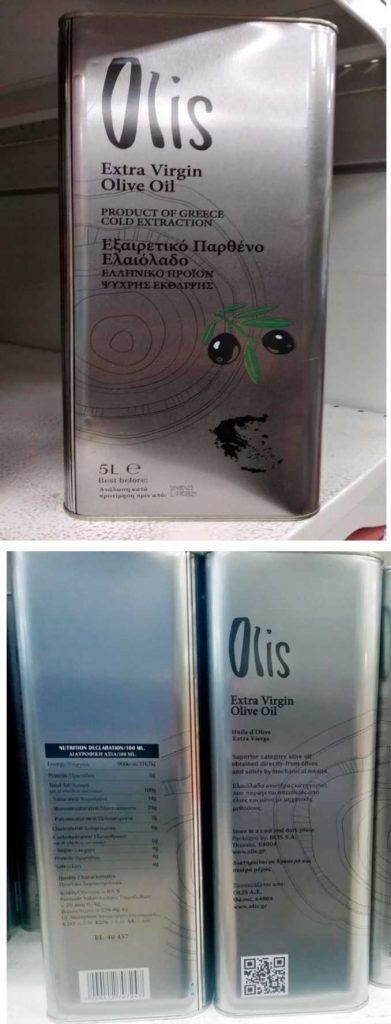 Πρόκειται για δύο παρτίδες του προϊόντος «Εξαιρετικό Παρθένο Ελαιόλαδο» με την εμπορική ονομασία «OLIS» που τυποποιούνται στην Ελλάδα από την επιχείρηση «ΑΓΡΟΤΙΚΑ ΠΡΟΙΟΝΤΑ ΘΑΣΟΥ Α.Ε.- OLIS A.E.», ΤΚ 64004 ΘΑΣΟΣ με αλφαριθμητικό αριθμό μονάδας τυποποίησης EL 40457 και συγκεκριμένα: