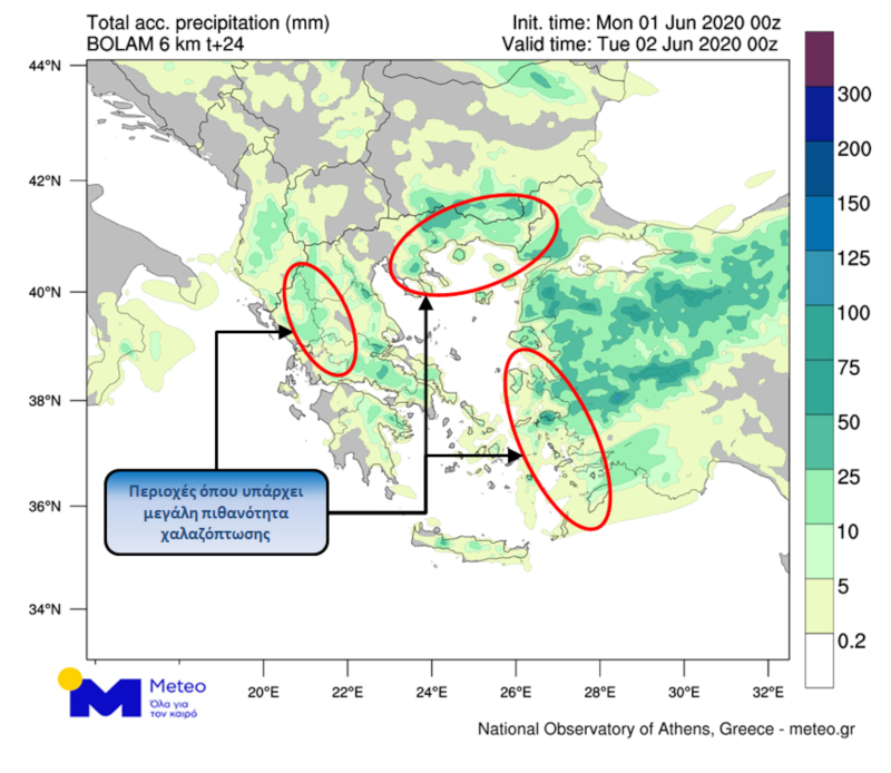 α. Σήμερα Δευτέρα (01/06/2020), στα νησιά του βορείου και ανατολικού Αιγαίου, στα Δωδεκάνησα, τις μεσημβρινές και απογευματινές ώρες κατά τόπους στα ηπειρωτικά και από το απόγευμα στην Κρήτη (κυρίως στα ανατολικά).