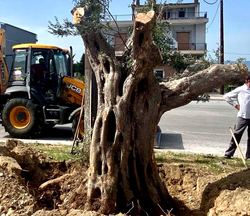 Ελιά 400 ετών μεταφυτεύτηκε στην είσοδο του Λευκώνα Σερρών