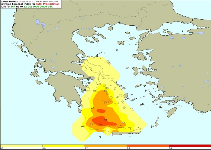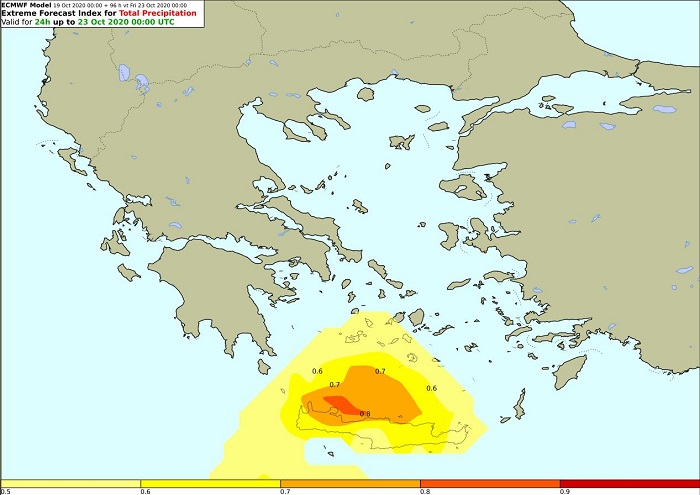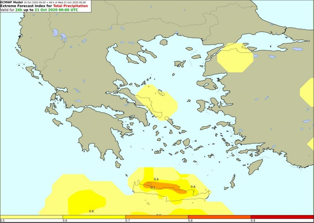 Πριν σας δώσουμε τα ύψη υετού σας καταθέτουμε ως ενημερωτικό στοιχείο τους χάρτες επικινδυνότητας οι οποίοι φτάνουν μέχρι την πορτοκαλί ένδειξη για την Κρήτη και τις Δυτικές Κυκλάδες την Τετάρτη . Οι χάρτες παρουσιάζουν σε χρωματικό δείκτη τα όρια του 24ωρου υετού για το χρονικό διάστημα που προηγείται της ώρας ισχύος του κάθε χάρτη .