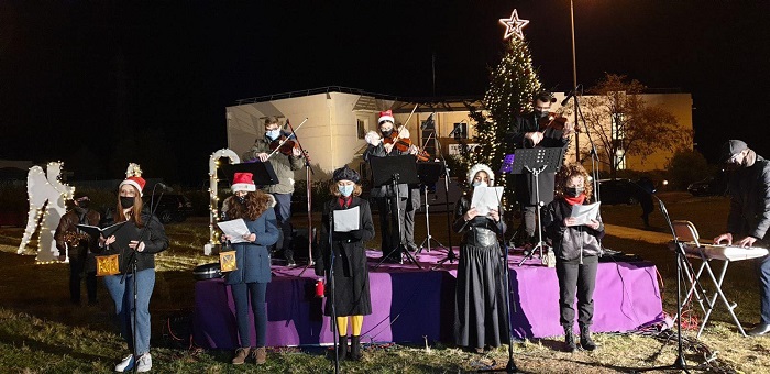 Τη βραδιά πλαισίωσε μελωδικά η χορωδία και βιολιά του Δημοτικού Ωδείου Αλεξανδρούπολης, ενώ φαναράκια ευχών φώτισαν τον ουρανό της Αλεξανδρούπολης.