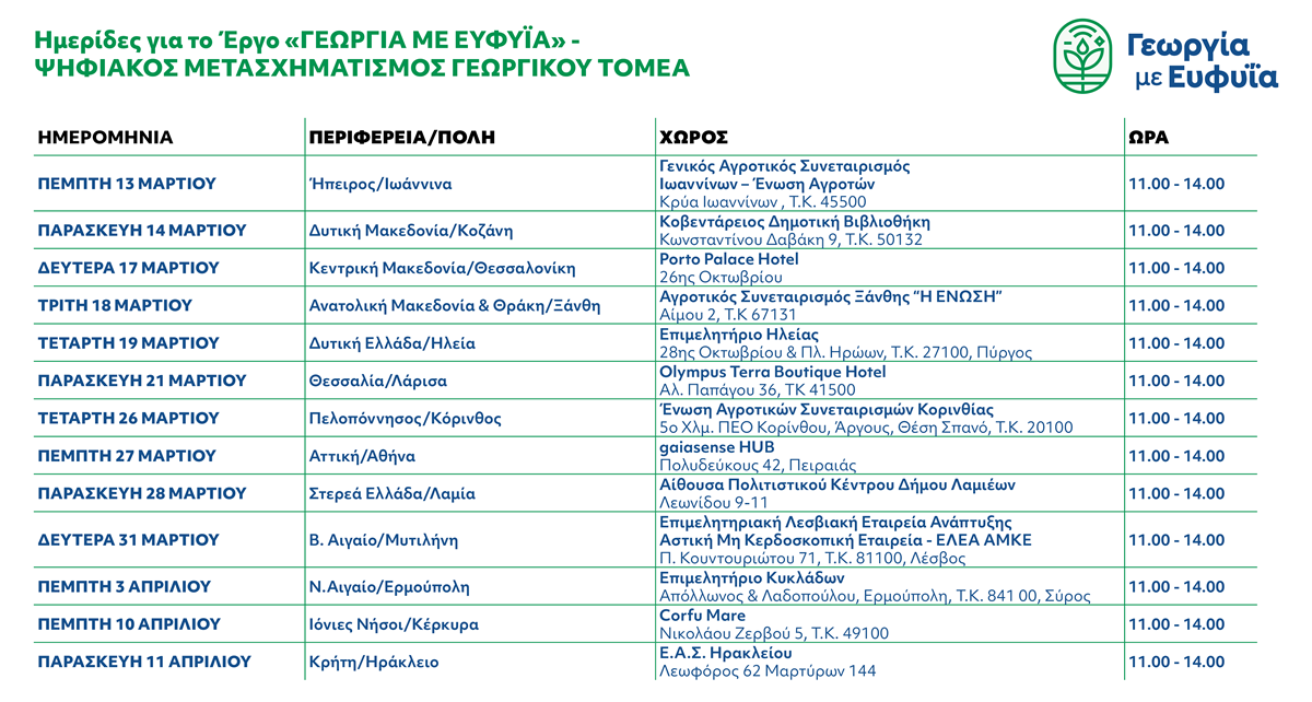 Ενημερωτικές Ημερίδες για το Έργο «Γεωργία με Ευφυΐα» σε όλη τη χώρα!