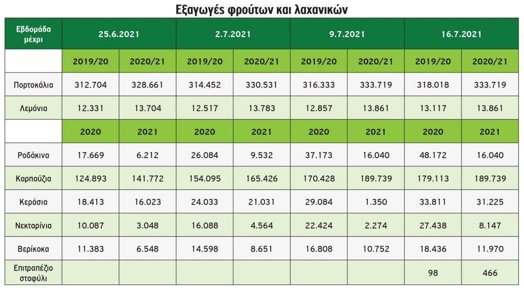 Εξαγωγές Νωπών Οπωροκηπευτικών 16.7.2021