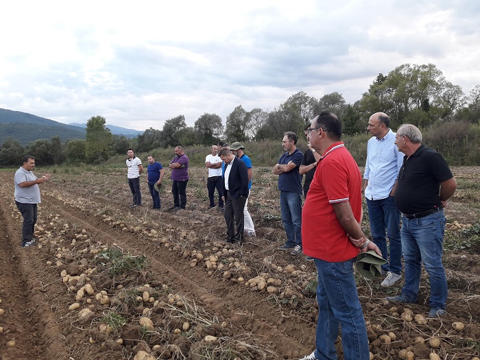Ακολούθησε επίσκεψη σε αποδεικτικό αγρό πλησίον της έκθεσης, όπου παρουσιάστηκαν τα χαρακτηριστικά και αναδείχθηκε η αποδοτικότητα των νέων ποικιλιών πατάτας των οίκων DEN HARTIGH και SOLANA που αναπτύσσονται στην περιοχή σε σύγκριση και με ποικιλίες εγνωσμένης αξίας που καλλιεργούνται στην περιοχή.