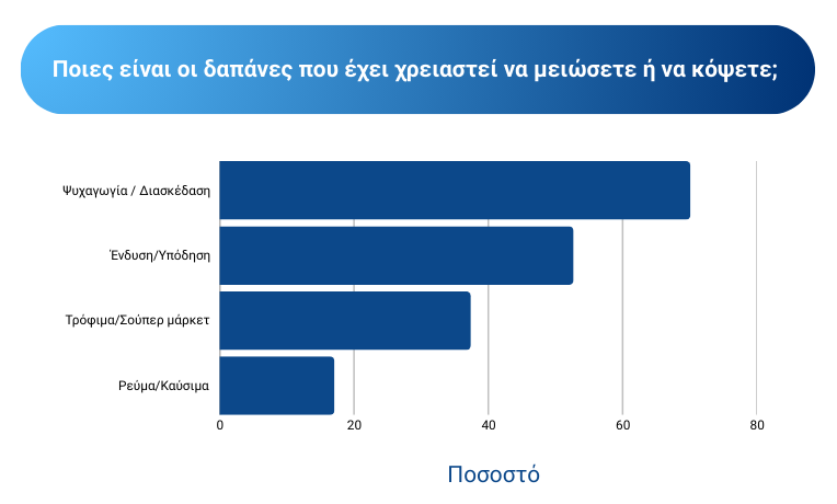 Η ακρίβεια αναδεικνύεται ως το κυρίαρχο κοινωνικό και οικονομικό φαινόμενο, με περισσότερους από 8 στους 10 πολίτες να δηλώνουν ότι έχουν επηρεαστεί πολύ ή αρκετά από την άνοδο των τιμών, ενώ το 74% αναφέρει ότι η αγοραστική του δύναμη έχει επιδεινωθεί τα τελευταία δύο χρόνια. Παράλληλα, σχεδόν 8 στους 10 πολίτες έχουν αναγκαστεί να μειώσουν δαπάνες, ακόμη και σε βασικές κατηγορίες όπως τρόφιμα, ενέργεια και υπηρεσίες υγείας.