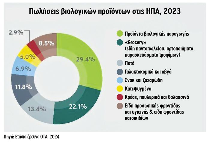 Νέο ρεκόρ για τον τομέα των βιολογικών κατέγραψαν οι πωλήσεις στις ΗΠΑ το 2023, μετά την αύξηση που σημείωσαν κατά 3,4%, πλησιάζοντας τα 70 δισ. δολάρια, όπως καταγράφει η ετήσια έρευνα της Ένωσης Βιολογικού Εμπορίου (Organic Trade Association).