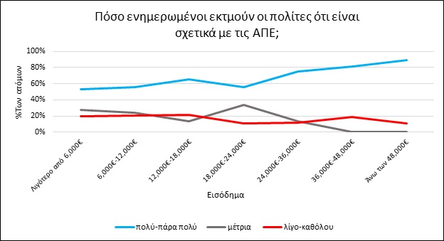 Διαπιστώθηκε ότι το ποσοστό των ανθρώπων που εκτιμούν ότι είναι ενημερωμένοι σχετικά με τις ΑΠΕ να ξεκινά από το 50%, στις χαμηλότερα εισοδηματικές ομάδες, και να φτάνει το 90% των ατόμων στα υψηλότερα εισοδήματα.