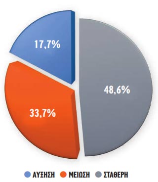 ✱ Ένας στους τρεις γεωργούς μείωσε ή σχεδιάζει να μειώσει τη γη που καλλιεργεί, ενώ οι μισοί περίπου θα συνεχίσουν να καλλιεργούν τις ίδιες εκτάσεις και οι υπόλοιποι (17,7%) θα επεκτείνουν τις καλλιέργειές τους (βλ. Διάγραμμα 2).