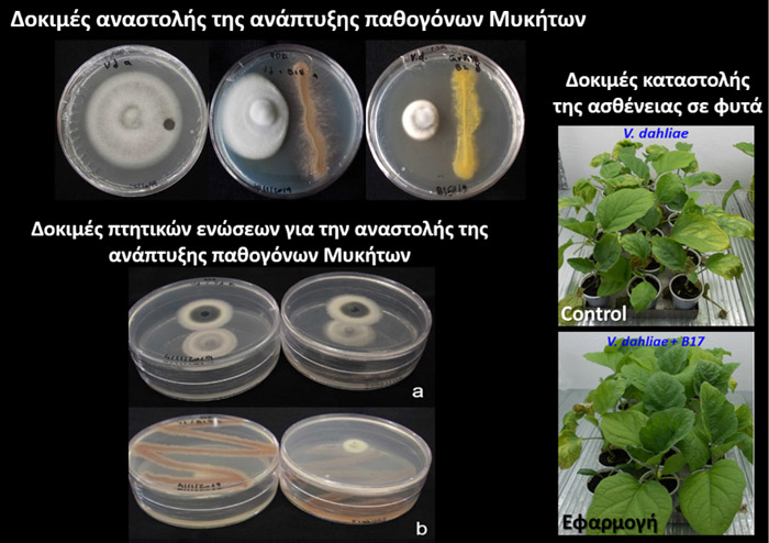 Προκαταρκτικά πειράματα, ανέδειξαν τη δυνατότητα διαφόρων μικροβιακών στελεχών να προστατεύουν τα φυτά από τη βερτισιλλίωση (Verticillium dahliae), καθώς και από τα βακτήρια καραντίνας Ralstonia solanacearum και Clavibacter michiganensis subsp. michiganensis, καθιστώντας τα ταυτόχρονα ιδιαιτέρως ανεκτικά στην υψηλή αλατότητα. Τα απομονωμένα στελέχη θα εμπλουτίσουν την υπάρχουσα τράπεζα γενετικού υλικού και θα χρησιμοποιηθούν για τον μετέπειτα σχεδιασμό εμπορικών σκευασμάτων (συνθετικών μικροβιακών κοινοτήτων).