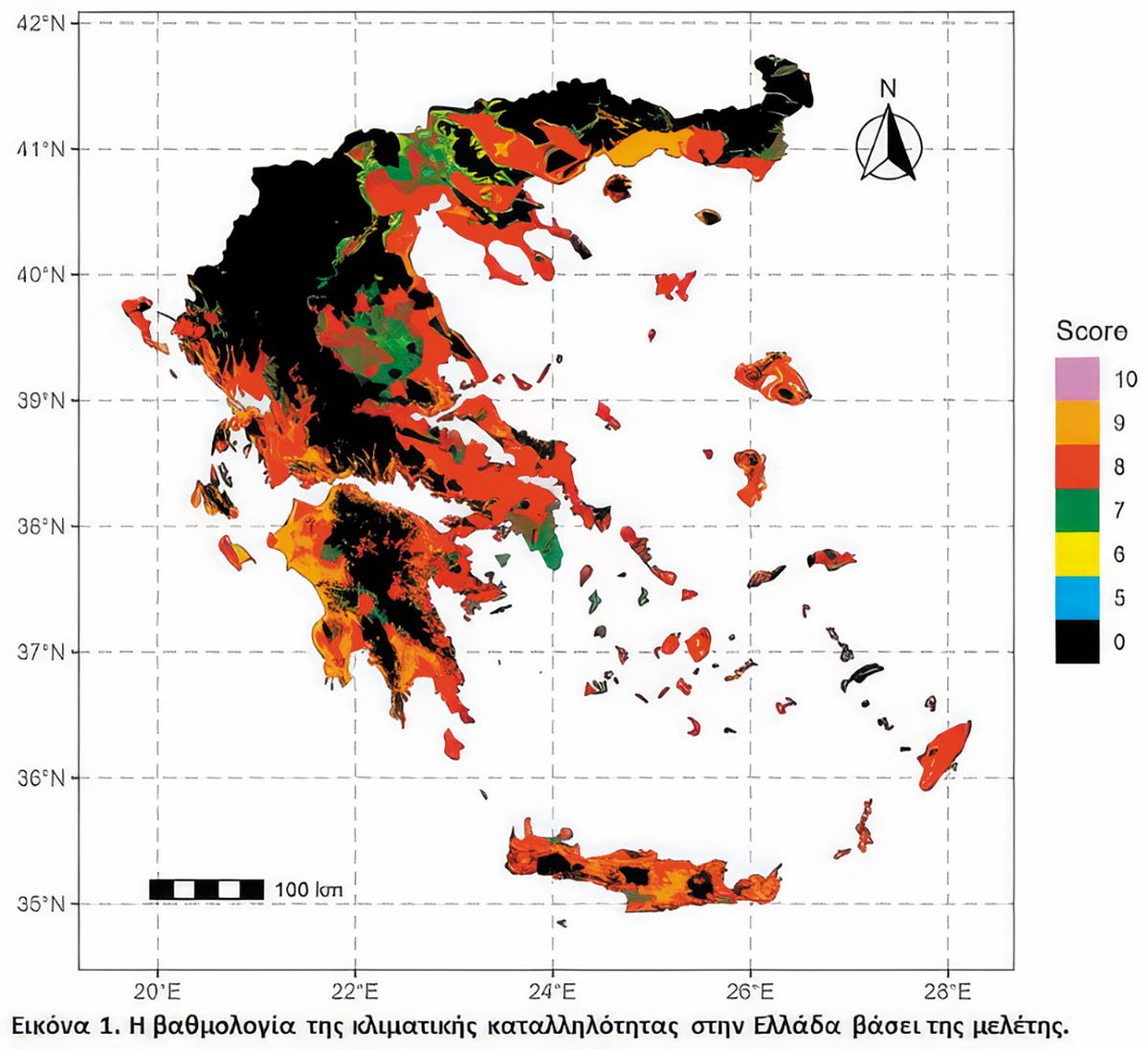 Συγκεκριμένα, τα πλέον κλιματικά κατάλληλα μέρη για την καλλιέργεια της ελιάς τα βρήκαμε στη Μεσσηνία, την Ηλεία, σε τμήματα της Νότιας Αχαΐας και σε τμήματα της Λακωνίας, ανατολικά του Ταϋγέτου. Στις περιοχές με υψηλό κλιματικό σκορ, άρα και αυξημένη καταλληλότητα, είναι νότια της Ξάνθης και σε τμήματα της Αιτωλοακαρνανίας. Σε αυτές τις περιοχές, πρόσφατες φυτεύσεις ελαιώνων έχουν δώσει εξαιρετικά αποτελέσματα, κάτι που επιβεβαιώνει τη μελέτη μας», δήλωσε ο κ. Χαραλαμπόπουλος.