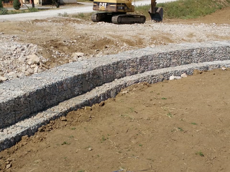 γ) η προστασία του δεξιού (στη θέση του αναβαθμού) πρανούς με συρματοκυλίνδρους σε μήκος 30μ., η κατασκευή αναβαθμού από οπλισμένο σκυρόδεμα για την προστασία και στήριξη της κοιτόστρωσης σε μήκος 66μ. καθώς και δύο σειρές συρματοκιβωτίων για την έδρασή της κοιτόστρωσης, στη θέση της γέφυρας Αμπελιάς.