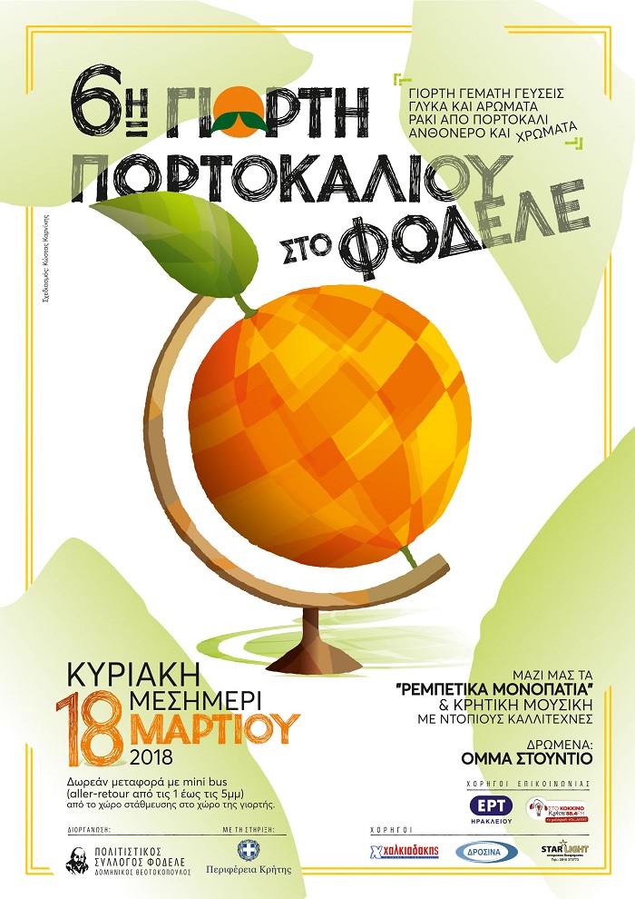 Ο Πολιτιστικός Σύλλογος του Φόδελε «Δομήνικος Θεοτοκόπουλος» οργανώνει την «6η Γιορτή Πορτοκαλιού» την Κυριακή 18 Μαρτίου από τις 12 το μεσημέρι με την στήριξη της Περιφέρειας Κρήτης.