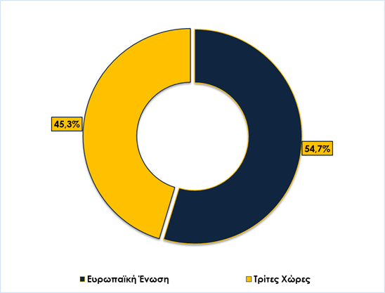 Γράφημα 2. Ελληνικές εξαγωγές ανά προορισμό (μερίδιο %), Ιανουάριος-Σεπτέμβριος 2022