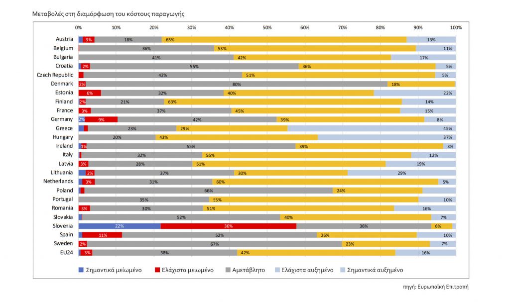 Αποκαλυπτικά είναι τα στοιχεία που αναφέρονται στην έκθεση της Ευρωπαϊκής Τράπεζας Επενδύσεων και της Κομισιόν σχετικά με την εξέλιξη του κόστους παραγωγής την τελευταία διετία (2017-2018).