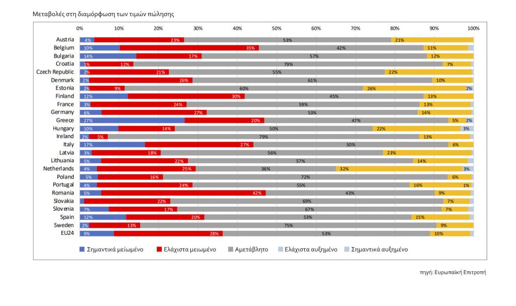 Σε ό,τι αφορά στην Ελλάδα, σε σύνολο 350 αγροτών που συνεισέφεραν στη διαμόρφωση των στοιχείων της έκθεσης, το 29% των ερωτηθέντων δήλωσε ότι το κόστος της παραγωγής τους αυξήθηκε ελάχιστα ενώ σχεδόν οι μισοί, (45%) ανέφερε ότι το κόστος παραγωγής αυξήθηκε σημαντικά.