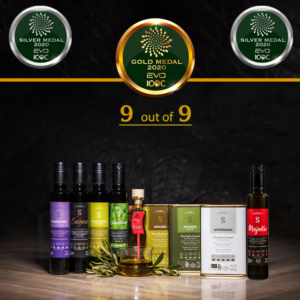 Τα εξειδικευμένα ελαιόλαδα μας βραβεύτηκαν με 3 χρυσά και 6 ασημένια, συνολικά 9 σημαντικά βραβεία, με πολύ υψηλές αντίστοιχες βαθμολογίες.