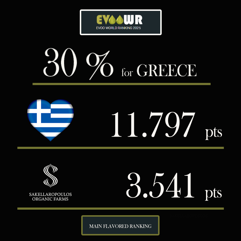 Αξιοσημείωτο στοιχείο της παγκόσμιας κατάταξης ελαιολάδων του 2025 αποτελεί η ανάδειξη της Ελλάδας ως νικήτριας και Νο.1 ελαιοπαραγωγός χώρα γαστρονομικών ελαιολάδων σε παγκόσμιο επίπεδο, συγκεντρώνοντας 11.797 πόντους, στην κατηγορία World Ranking of Countries of Flavored Oils 2025.