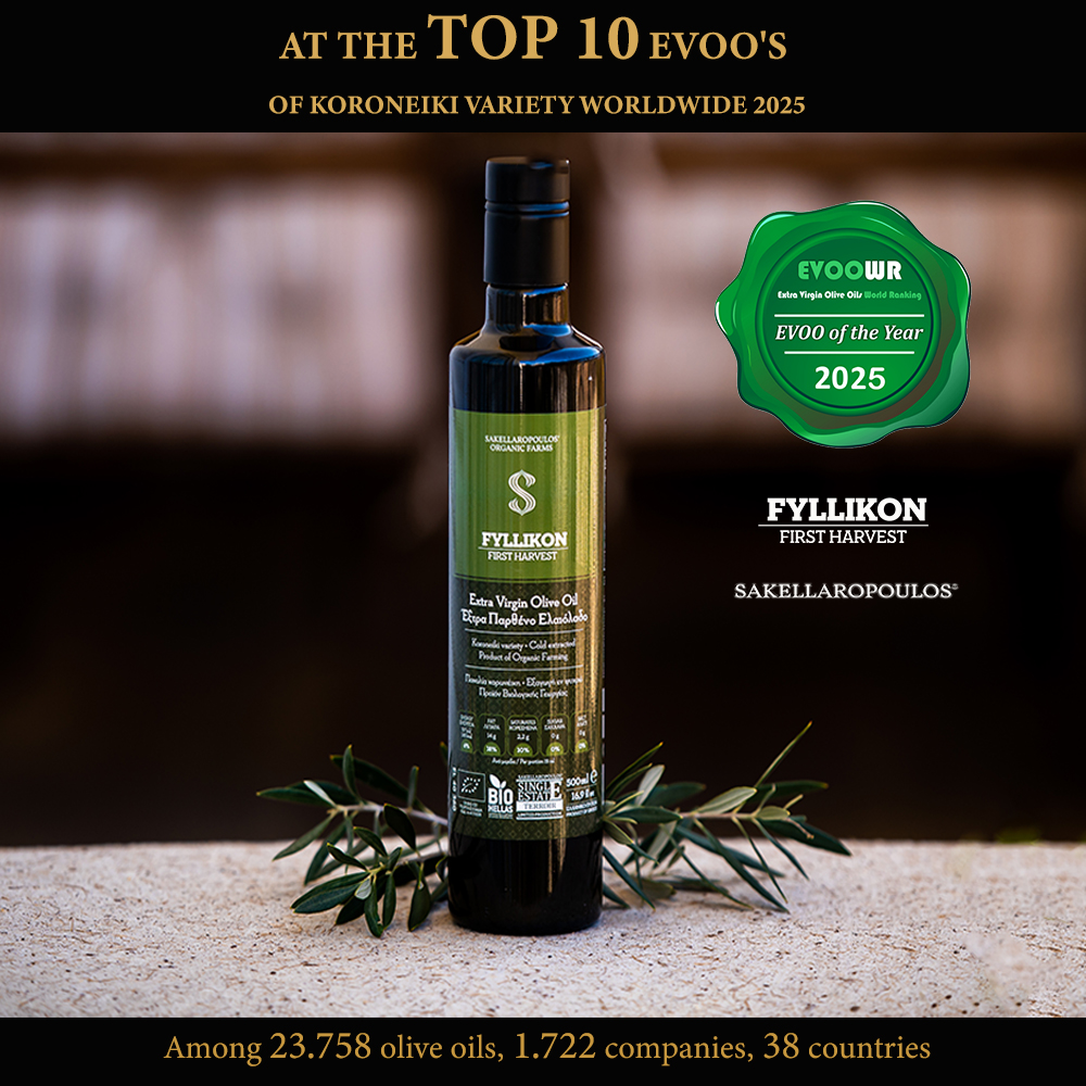 - Τα βιολογικά ελαιόλαδα «Φυλλικόν Πρωτέλαιο», «Αγουρέλαιο Άθερμο» βρέθηκαν στο TOP 10, ενώ το «Αρμονία Μονοποικιλιακό» βρέθηκε στο TOP 15 των καλύτερων εξαιρετικών παρθένων ελαιολάδων Κορωνέικης ποικιλίας του κόσμου για το 2025 (RANKING OF THE BEST Koroneiki EVOOS 2025).