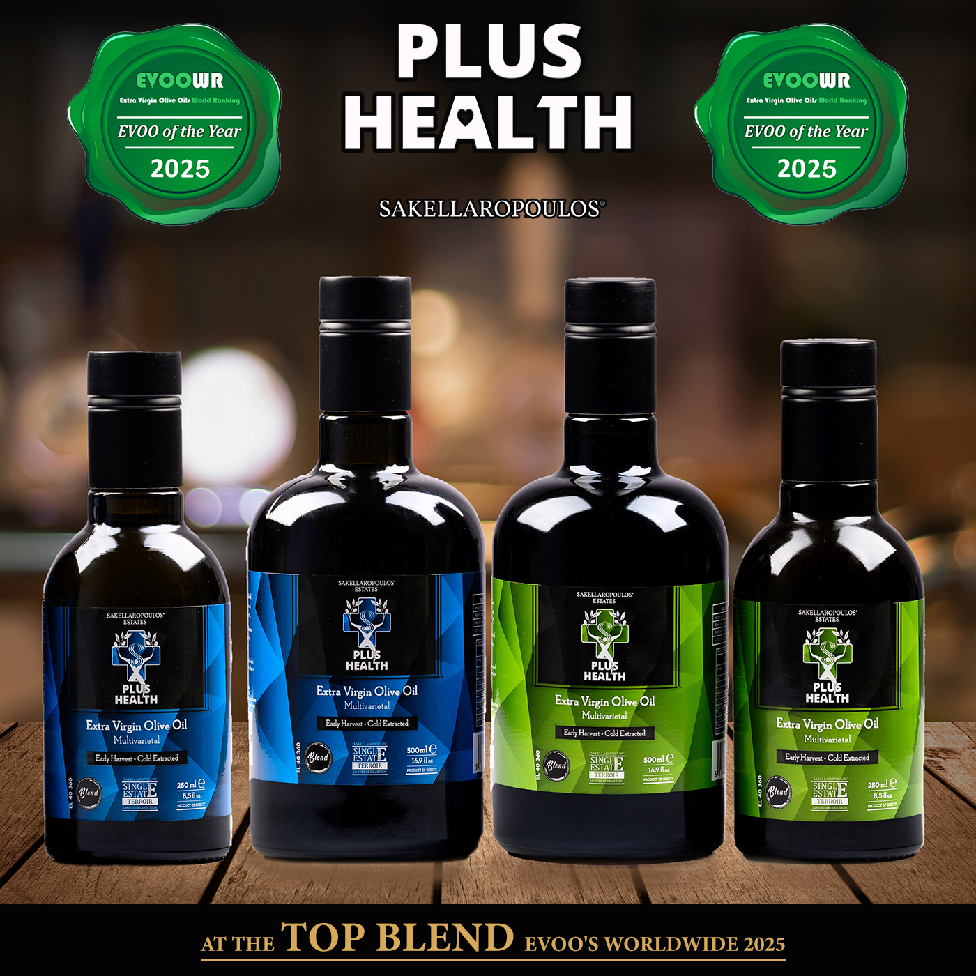 - Τα εξειδικευμένα πολυποικιλιακά ελαιόλαδα «Plus Health Multivarietal Green Evoo» και «Plus Health Multivarietal Blue Evoo» συμπεριλαμβάνονται στα TOP 100 καλύτερα πολυποικιλιακά (Blend) εξαιρετικά παρθένα ελαιόλαδα του κόσμου για το 2025, ανάμεσα σε 1.027 ελαιόλαδα της ίδιας κατηγορίας που διακρίθηκαν και βραβεύτηκαν στους 47 διεθνείς διαγωνισμούς του 2025, σε όλο τον κόσμο.