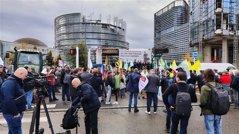 Ευρωπαϊκοί αγροτικοί φορείς πραγματοποιούν διαμαρτυρία στη Rue Lucien Febvre στο Στρασβούργο, διαμαρτυρόμενοι για την πρόταση της Ευρωπαϊκής Επιτροπής σχετικά με τη μεταρρύθμιση της Κοινής Αγροτικής Πολιτικής (ΚΑΠ) και το δημοσιονομικό πλαίσιο της ΕΕ.