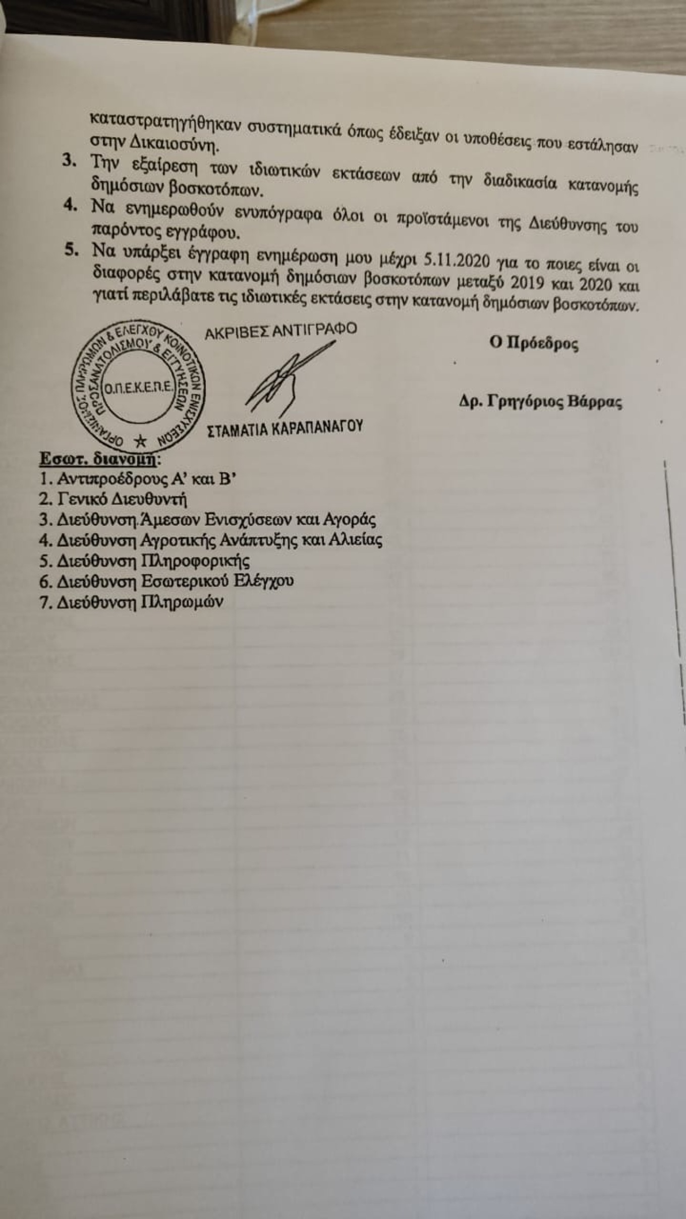 Και «γίνεται όλο και καλύτερο» λέει ο κ. Βορίδης. Στις 23/6/20, με έγγραφο δύο διευθύνσεων του ΟΠΕΚΕΠΕ προς τον κ. Βάρρα και τον κ. Μελά για την κατανομή των δημοσίων βοσκοτόπων επισημαίνεται ότι έχει αυξηθεί το ζωικό κεφάλαιο και του προτείνουν μέτρα, π.χ. να εφαρμοστεί οριζόντια μείωση για όσους γεωργούς-κτηνοτρόφους έχουν ήδη δικαιώματα. Να ξεκινήσει η οριζόντια μείωση από τον Μάιο του ’20.
