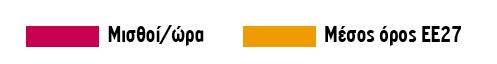 Ενώ, όμως, το μέσο ωρομίσθιο στην ΕΕ φτάνει τα 8,70 ευρώ, στη χώρα μας βρίσκεται στα μόλις 3,6 ευρώ, αποτελώντας την τρίτη χαμηλότερη επίδοση στην ΕΕ-27 μπροστά μόνο από τη Βουλγαρία και τη Ρουμανία. Είναι χαρακτηριστικό ότι παρά το γεγονός ότι η Ελλάδα αποτελεί ένα από τα πιο παλαιά μέλη της ΕΕ, τα ωρομίσθια με τα οποία αμείβονται οι εργαζόμενοι στις γεωργικές εκμεταλλεύσεις είναι σημαντικά χαμηλότερα ακόμα και από χώρες που εντάχθηκαν στην Ένωση το 2004, όπως η Λιθουανία, η Λετονία και η Εσθονία.