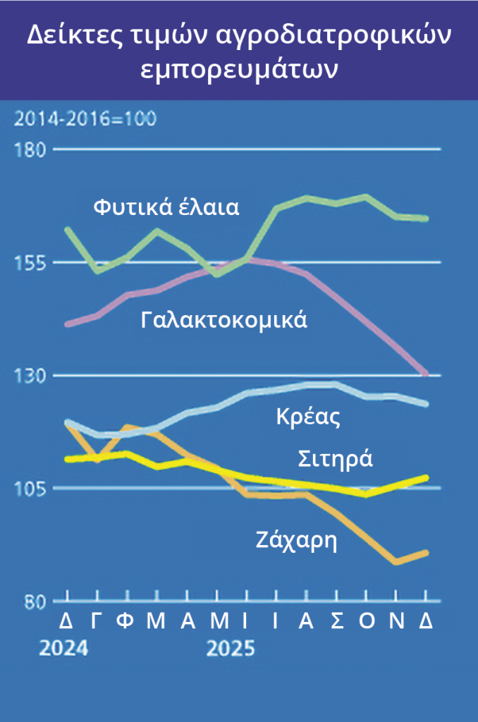 FAO: Πτώση τιμών τροφίμων τον Δεκέμβριο, αλλά το 2025 παρέμεινε «ακριβότερο» σε σχέση με το 2024