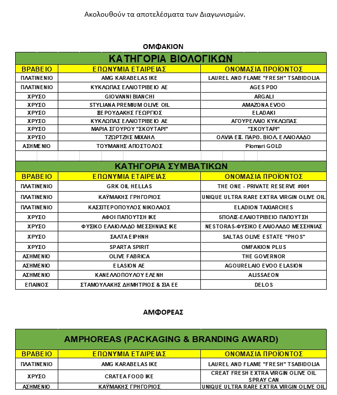 ΦΙΛΑΙΟΣ: Η απονομή βραβείων και οι διακρίσεις στους διαγωνισμούς OMFAKION, TABLE OLIVE TROPHY και AMFOREAS