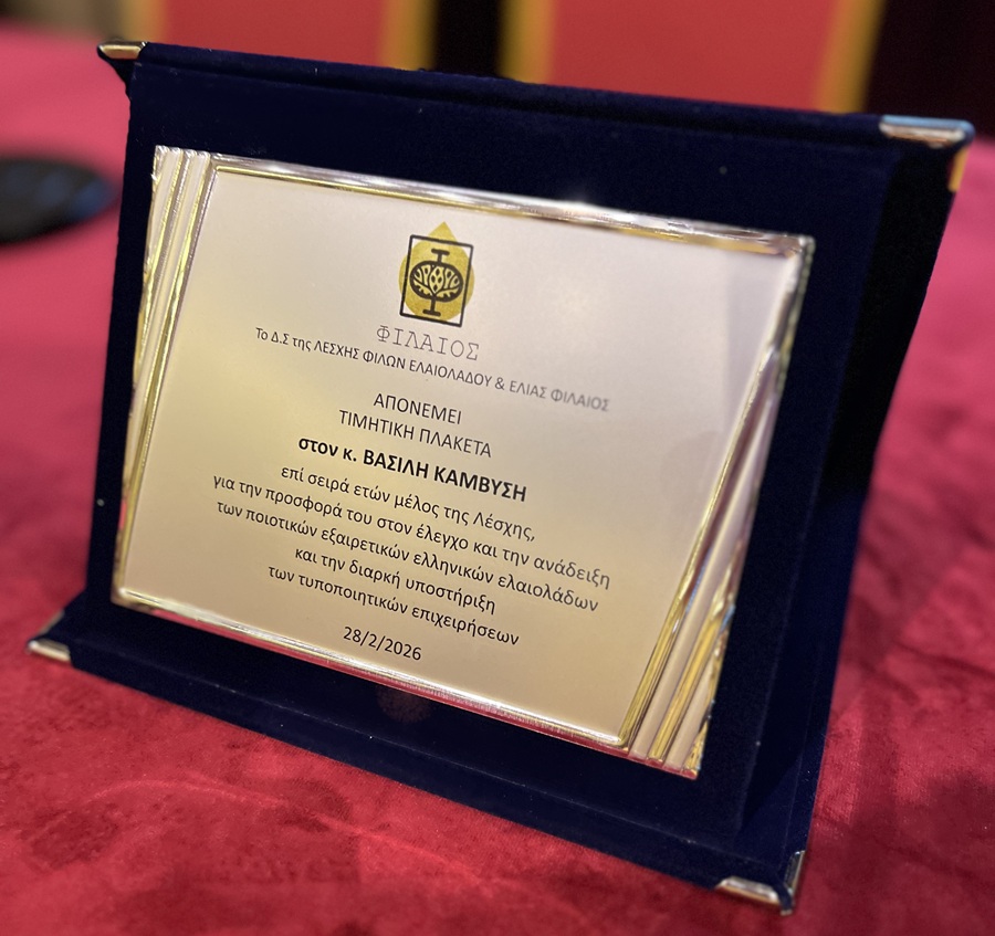 Η αριστεία στην ποιότητα των κορυφαίων ελαιολάδων και στην καινοτομία του ελαιοκομικού τομέα επιβραβεύθηκε για μια ακόμα φορά με απονομή βραβείων, επαίνων και διακρίσεων από την Λέσχη Φίλων Ελαιολάδου & Ελιάς «ΦΙΛΑΙΟΣ» σε ειδική εκδήλωση το Σάββατο 28 Φεβρουαρίου 2026, στην ιστορική και υψηλής αισθητικής αίθουσας του Φιλολογικού Συλλόγου «ΠΑΡΝΑΣΣΟΣ» στην Αθήνα.