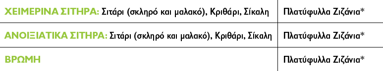 Παρατηρήσεις: Η χρήση στα χειμερινά σιτηρά περιλαμβάνει και το τριτικάλε