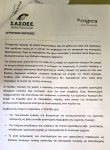 Στη συνέχεια, είπε λίγα λόγια για τον Σύνδεσμο Αγροτικών Συνεταιριστικών Οργανώσεων και Επιχειρήσεων Ελλάδας (ΣΑΣΟΕΕ): «Εκπροσωπεί 100 και πλέον συλλογικά σχήματα που δραστηριοποιούνται στην παραγωγή, μεταποίηση και εμπορία αγροτικών προϊόντων, με άμεση διασύνδεση με την περιφερειακή ανάπτυξη και την κοινωνική συνοχή της υπαίθρου. Παράλληλα, αποτελούμε μέλη της COGECA της Συνομοσπονδίας Αγροτικών Συνεταιρισμών της ΕΕ, η οποία εκπροσωπεί περίπου 22.000 αγροτικούς συνεταιρισμούς, περισσότερους από 7 εκατ. αγρότες-μέλη και πάνω από 600.000 εργαζόμενους στην αγροδιατροφική αλυσίδα της Ευρώπης». Μέσα από αυτή τη συμμετοχή, ο ΣΑΣΟΕΕ έχει και άμεση εικόνα των ευρωπαϊκών και διεθνών εξελίξεων, που επηρεάζουν το μέλλον της ελληνικής γεωργίας.