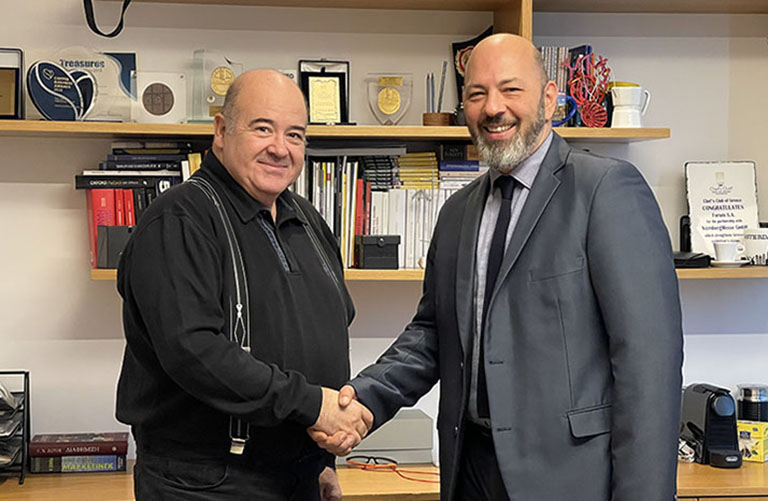 Ο Αντιπρόεδρος της FORUM κ. Θανάσης Γιαλούρης με τον Χάρη Χαραλαμπίδη της Gastronomy Essentials.