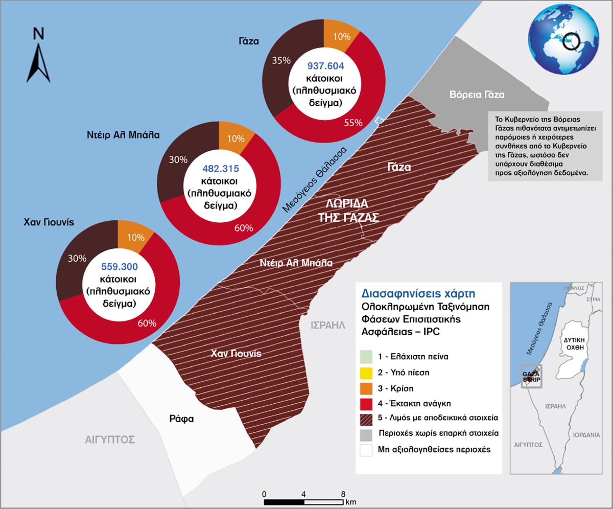 Περισσότεροι από μισό εκατομμύριο Παλαιστίνιοι στη Λωρίδα της Γάζας βρίσκονται παγιδευμένοι σε κατάσταση λιμού, η οποία χαρακτηρίζεται από εκτεταμένη πείνα, ένδεια και θανάτους που θα μπορούσαν να έχουν αποφευχθεί, σύμφωνα με μια νέα ανάλυση της Ολοκληρωμένης Ταξινόμησης Φάσεων Επισιτιστικής Ασφάλειας (IPC), που δημοσιεύθηκε στις 22 Αυγούστου.