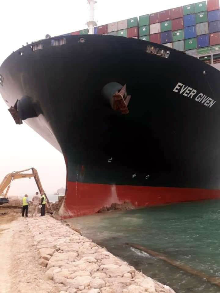 Φωτογραφία την οποία τράβηξε αμερικανίδα μηχανικός κοντινού πλοίου και ανήρτησε στο Instagram εικονίζει το MV Ever Given, ταϊβανέζικο φορτηγό μήκους 400 μέτρων και πλάτους 59, ενώ έχει προσαράξει, βρίσκεται κάθετα μέσα στη Διώρυγα κι εμποδίζει οποιαδήποτε διέλευση.