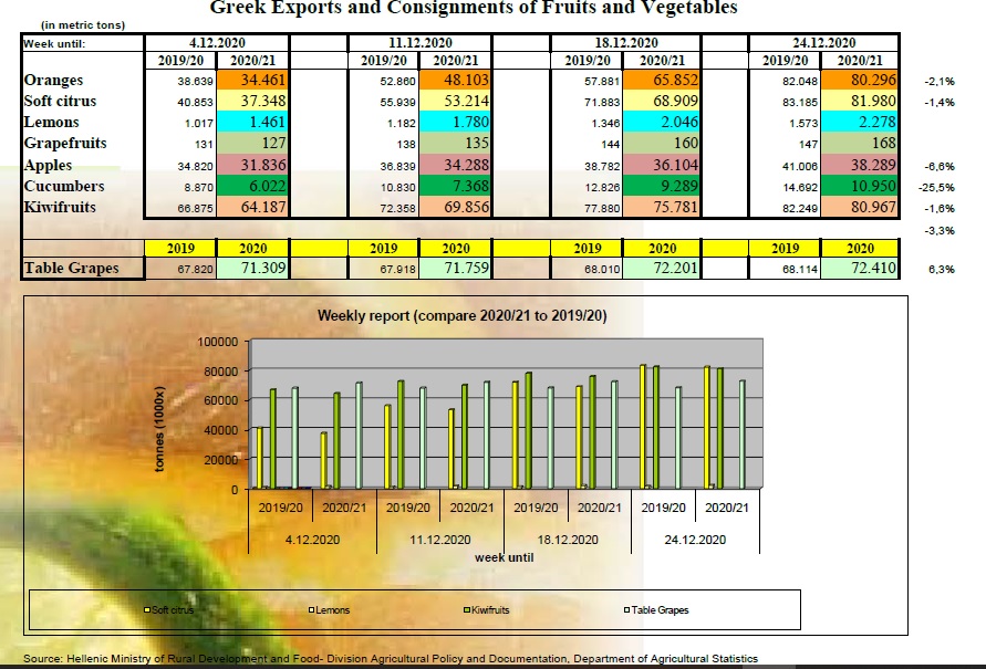 Την εβδομάδα από την Παρασκευή 18/12 έως και σήμερα Πέμπτη 24/12, συνεχίσθηκε η ανάκαμψη της αγοράς κυρίως στα εσπεριδοειδή, χάρη στις χριστουγεννιάτικες πωλήσεις, αλλά εκφράζεται φόβος ότι αυτή η ανάκαμψη θα είναι μικρής διάρκειας, δεδομένης της προσφοράς που έχει ήδη προγραμματιστεί και προβλήματα στην ανταπόκριση της ζήτησης με ανταγωνισμό των ελληνικών προϊόντων ακόμη και στις γειτονικές μας βαλκανικές χώρες αλλά και εισαγωγές στην χώρα μας, αναφέρει το εβδομαδιαίο δελτίο της Incofruit Hellas.