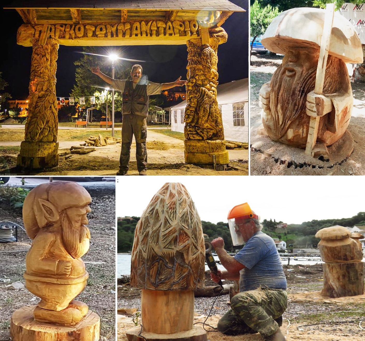 Γρεβενά:Τεράστιοι κορμοί δέντρων γίνονται έργα τέχνης στην υπαίθρια «μανιταρογλυπτική» με αλυσοπρίονα