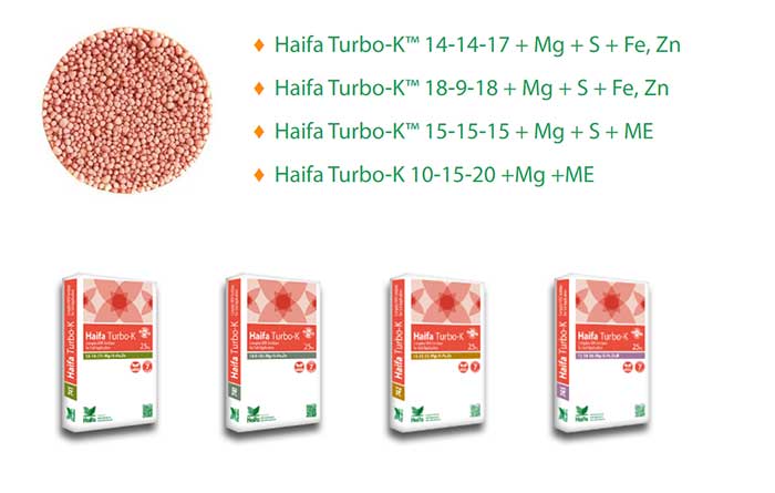 Η καινοτόμος σειρά κοκκώδη λιπασμάτων Haifa Turbo-Κ™ ελεύθερης νατρίου και χλωρίου, συμβάλλει στην μεγιστοποίηση των σοδειών ακόμη και σε ευαίσθητες στην αλατότητα καλλιέργειες.