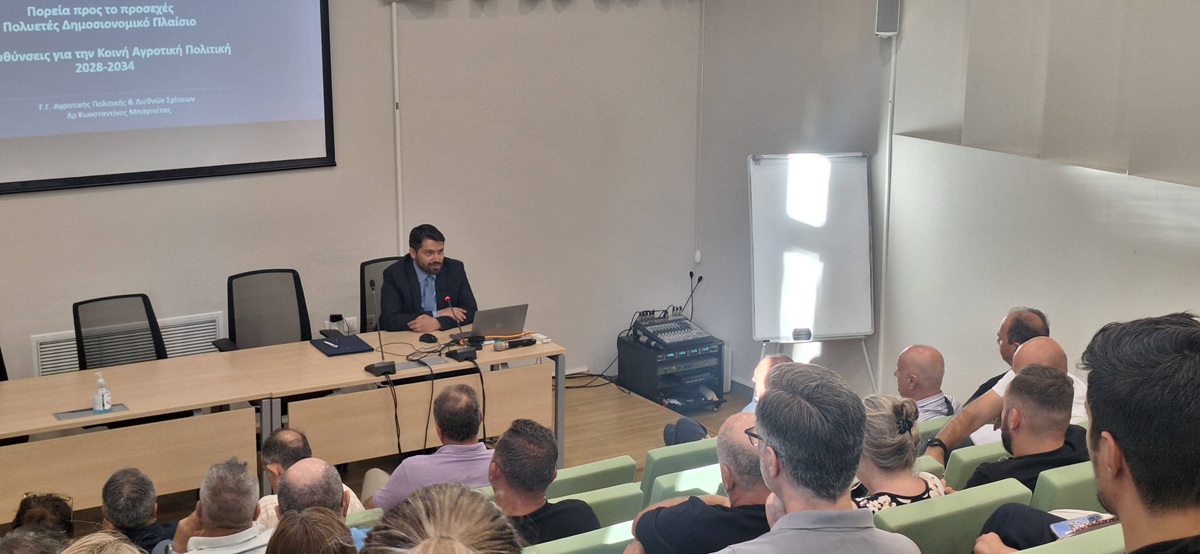 Κεντρικός ομιλητής ήταν ο γγ Αγροτικής Πολιτικής και Διεθνών Σχέσεων του υπουργείου Αγροτικής Ανάπτυξης και Τροφίμων, Κωνσταντίνος Μπαγινέτας, ο οποίος ανέλυσε τις κατευθύνσεις της νέας ΚΑΠ, εστιάζοντας στις αναδιαρθρώσεις, τις πράσινες πολιτικές και τις επιδοτήσεις. Στην ομιλία του για τη νέα ΚΑΠ μετά το 2027, παρουσίασε ένα φιλόδοξο όραμα για τον ευρωπαϊκό αγροδιατροφικό τομέα με ορίζοντα το 2040. Όπως είπε, η σχετική ανακοίνωση της Ευρωπαϊκής Επιτροπής εστιάζει σε τέσσερις βασικούς πυλώνες: έναν ελκυστικό και προβλέψιμο αγροτικό τομέα, έναν ανταγωνιστικό και ανθεκτικό τομέα, έναν τομέα με προοπτική για το μέλλον και δίκαιες συνθήκες διαβίωσης στις αγροτικές περιοχές. Σύμφωνα με τον κ. Μπαγινέτα, η νέα ΚΑΠ θα προσανατολιστεί σε δικαιότερη και στοχευμένη δημόσια στήριξη, με έμφαση στους ενεργούς παραγωγούς, τους νέους γεωργούς και τις μεικτές εκμεταλλεύσεις. Παράλληλα, θα ενισχυθεί η καινοτομία και η πράσινη γεωργία, με πρακτικές όπως η ανθρακοδεσμευτική γεωργία και η βιοοικονομία, που προσφέρουν νέες πηγές εισοδήματος. Η ΚΑΠ θα ενισχύσει την ανθεκτικότητα του τομέα μέσω επενδύσεων, συστημάτων ασφάλισης κινδύνου και μηχανισμών επιμερισμού ρίσκου. Τέλος, επισήμανε ότι η ΕΕ στοχεύει σε κλιματική ουδετερότητα έως το 2050, με πολιτικές που θα ανταμείβουν τους γεωργούς για την υιοθέτηση φιλικών προς τη φύση πρακτικών και προσέθεσε ότι η νέα ΚΑΠ δεν είναι απλώς μια συνέχεια, αλλά μια στρατηγική μετάβασης προς ένα βιώσιμο, δίκαιο και ανταγωνιστικό αγροδιατροφικό σύστημα.