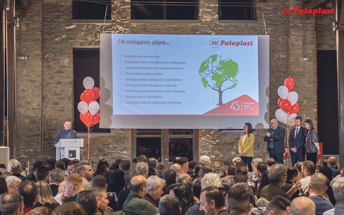 Η Palaplast, η κορυφαία εταιρεία στον κλάδο των συστημάτων άρδευσης και υδραυλικών εξαρτημάτων, γιόρτασε τα 45 χρόνια επιτυχημένης παρουσίας της στην αγορά, με μια λαμπερή εκδήλωση αφιερωμένη αποκλειστικά στους εργαζομένους της. Η εκδήλωση πραγματοποιήθηκε την Δευτέρα 13 Ιανουαρίου 2025 στο ξενοδοχείο Porto Palace, σε ζεστό και εορταστικό κλίμα.