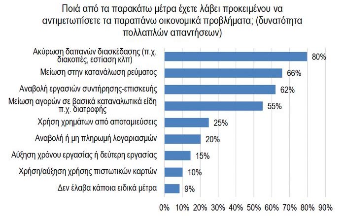✱ Το 80% δηλώνει ότι έχει ακυρώσει δαπάνες διασκέδασης, όπως είναι η εστίαση, οι διακοπές, τα ταξίδια κ.ά.